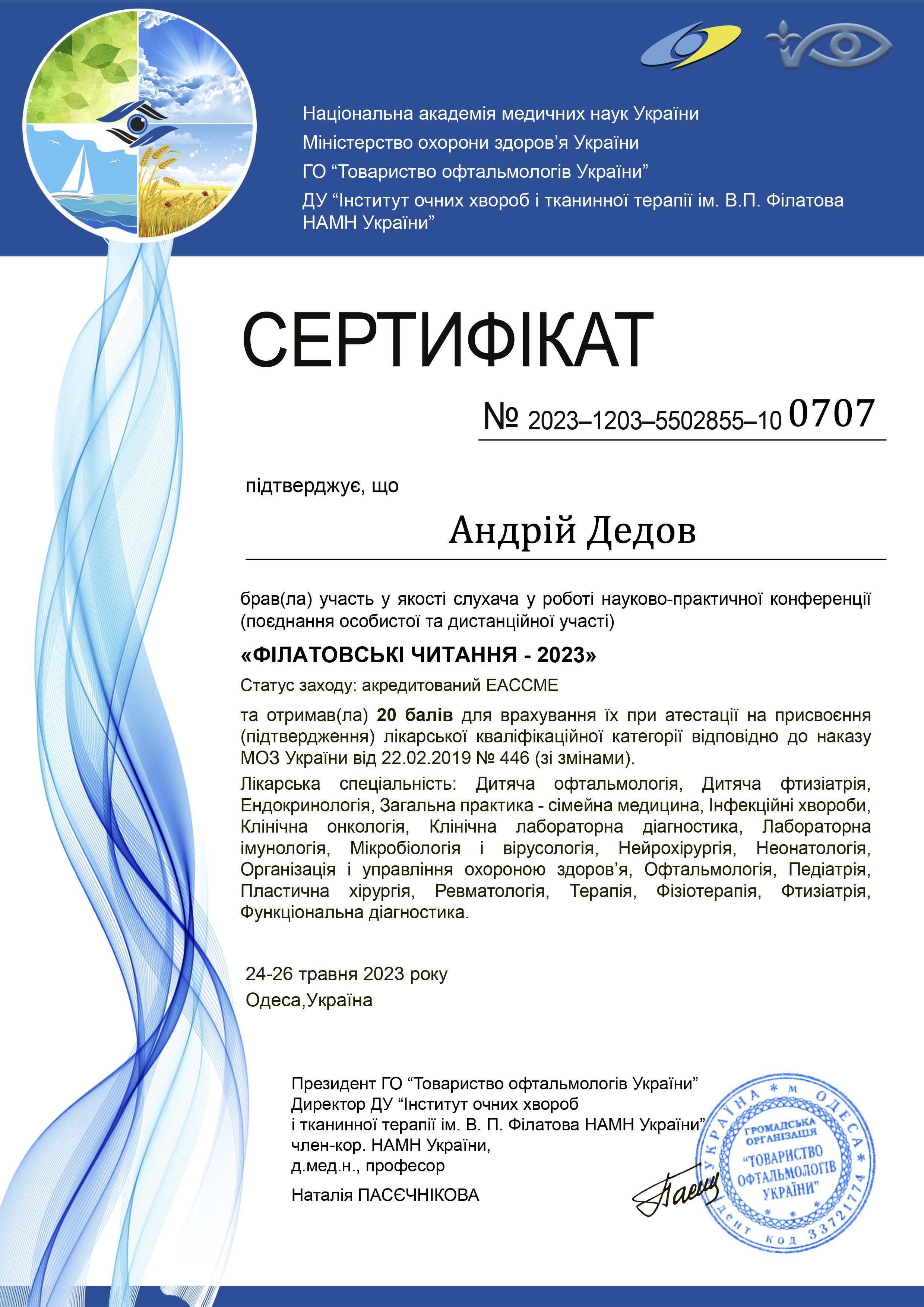З 2010 р практично "живе" в операційній, виконав понад 5500 операцій на сітківці та кришталику. Завжди має, що запропонувати.